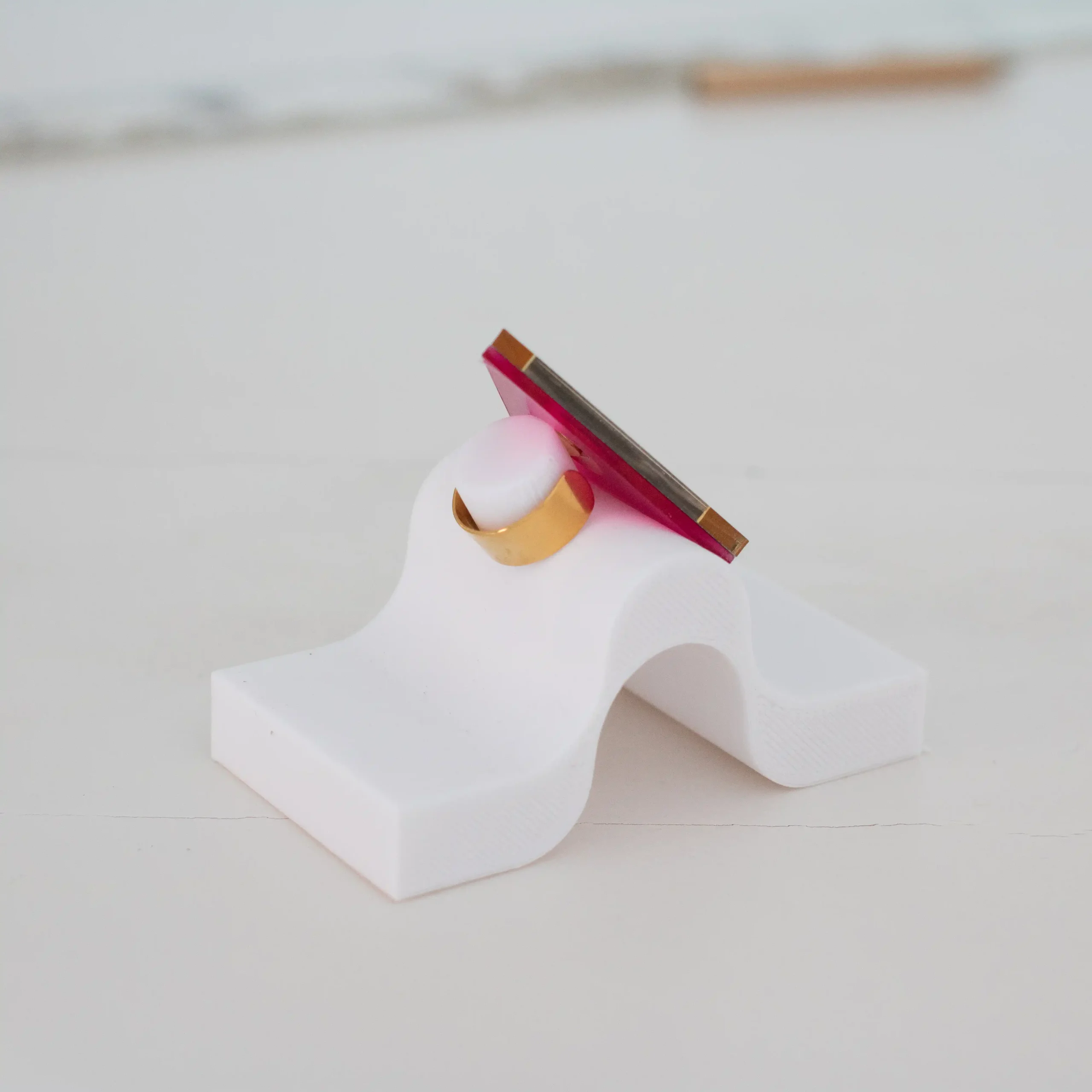 Maxi anillo YSKA en metacrilato espejo y nacarado. Diseño triangular, ligero y ajustable con base dorada. Hecho a mano para brillar con personalidad. Hecho a mano en nuestro taller, con amor by Quekoqueta.