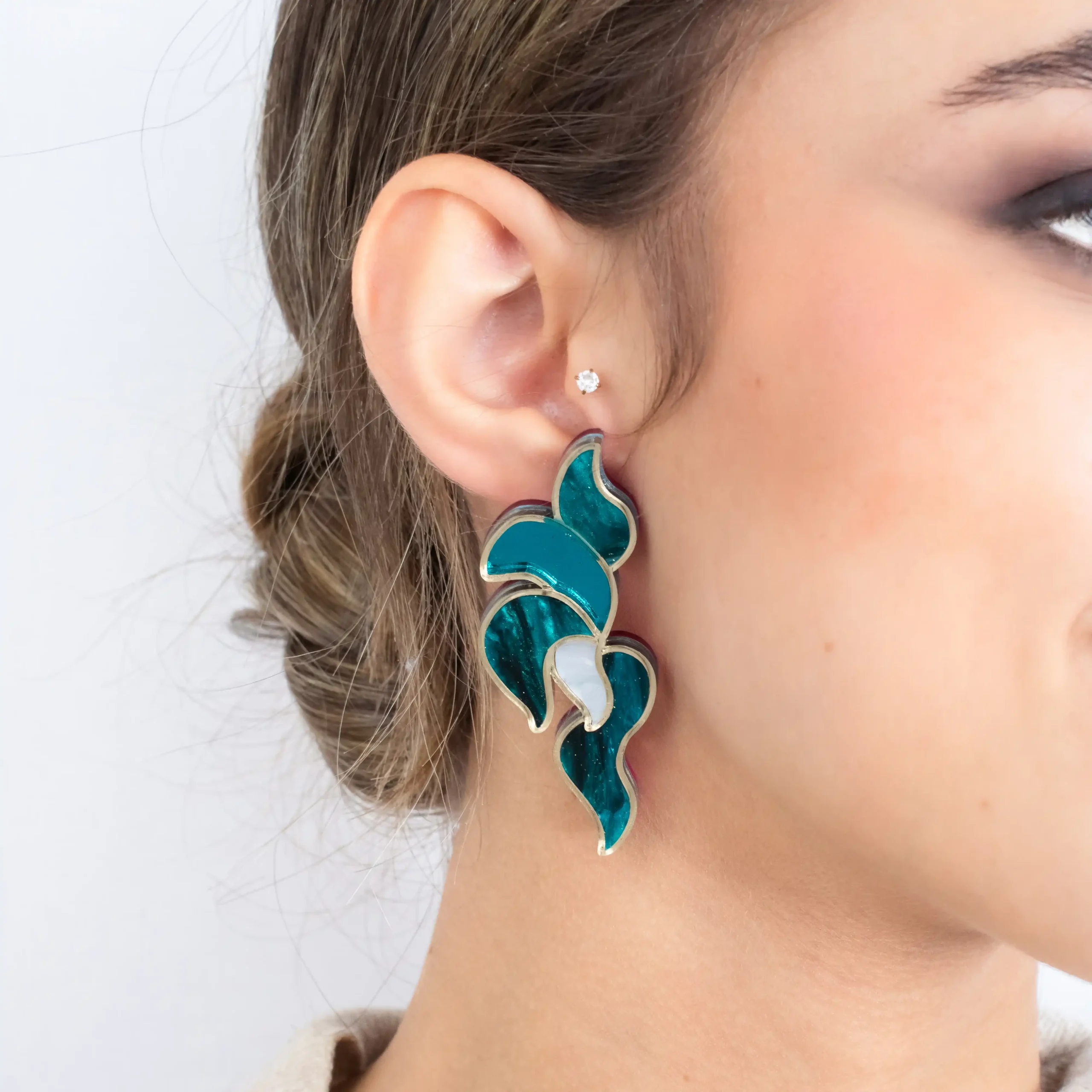 Pendientes ELYRA en metacrilato espejo y nacarado. Diseño vertical, ligero y brillante. Tres combinaciones de color. Cierre dorado con tapón de seguridad.. Colección NORSKA